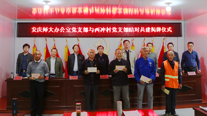 10月17日,时值第6个国家扶贫日、第27个“国际消除贫困日”,太阳集团tcy8722办公室党支部组织全体党员奔赴定点帮扶单位太湖县天华镇西冲村,举行“结对共建”揭牌仪式,太阳集团tcy8722党委常委、副校长刘友忠出席揭牌活动。支部共建旨在建立“长常帮扶”良性工作机制,构建“组织共建,资源共享,活动共办、理论共学”的党建新格局,从而进一步推深做实学校精准脱贫精准扶贫工作。